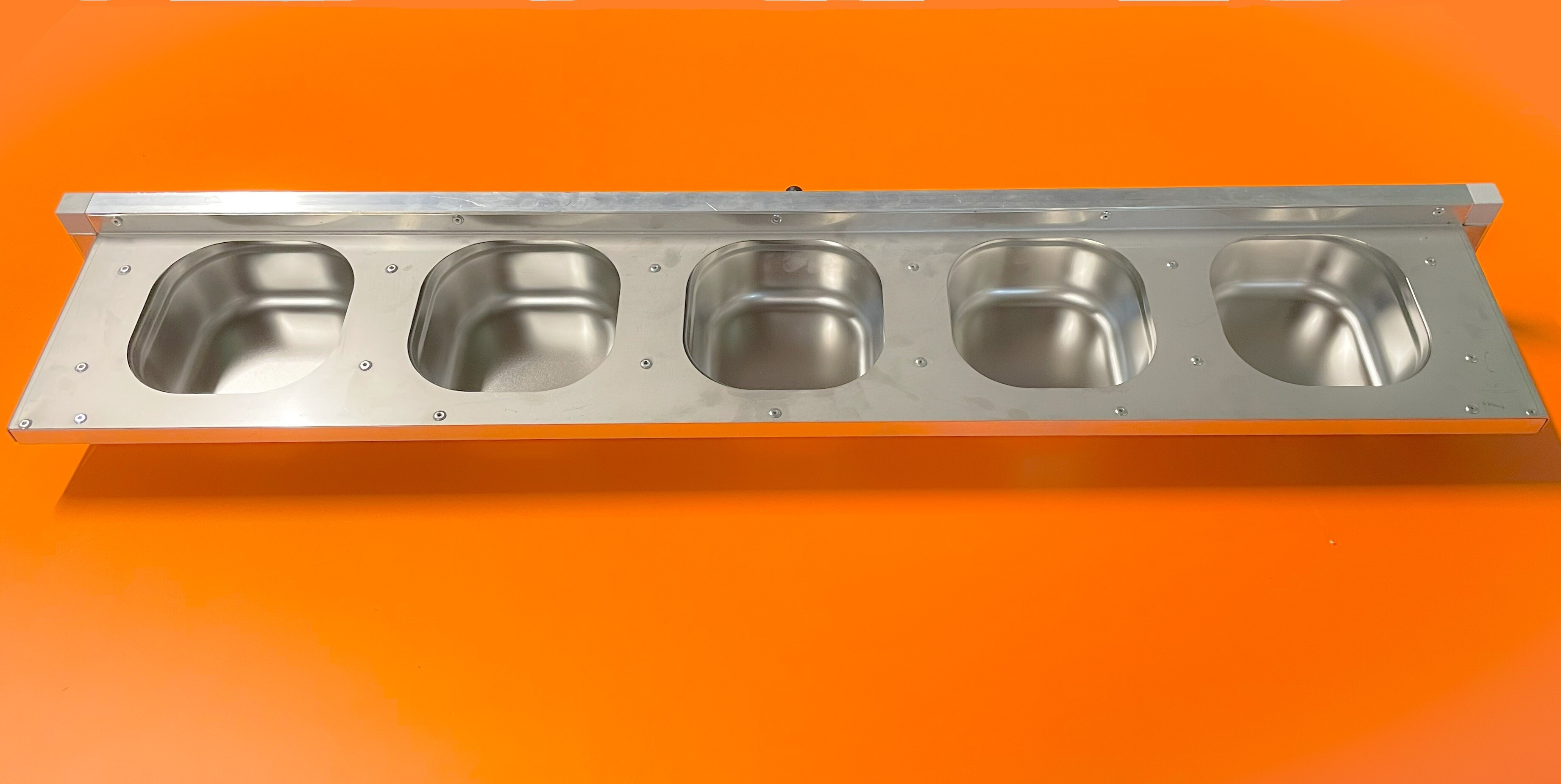 Krmný pult obsahuje 5 misek o objemu 1,3 l.