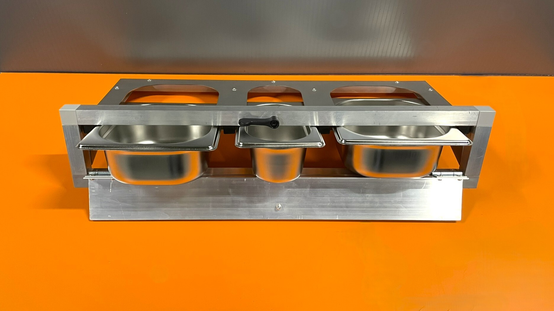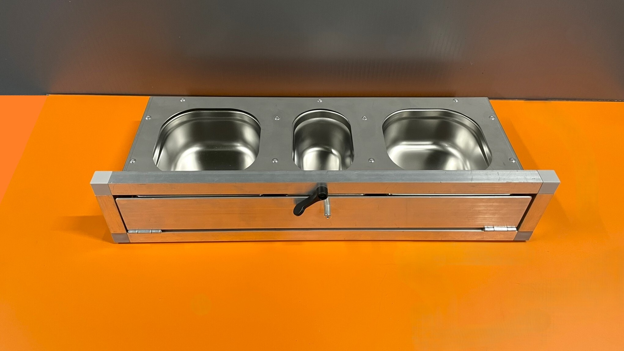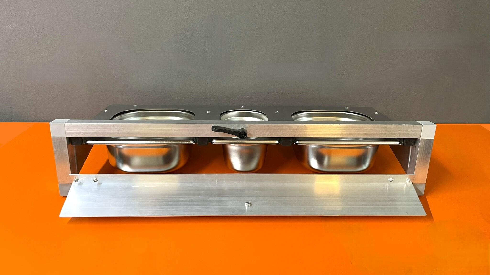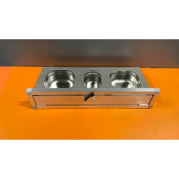 Krmný pult nerezový, včetně tří nerezových gastronádob.