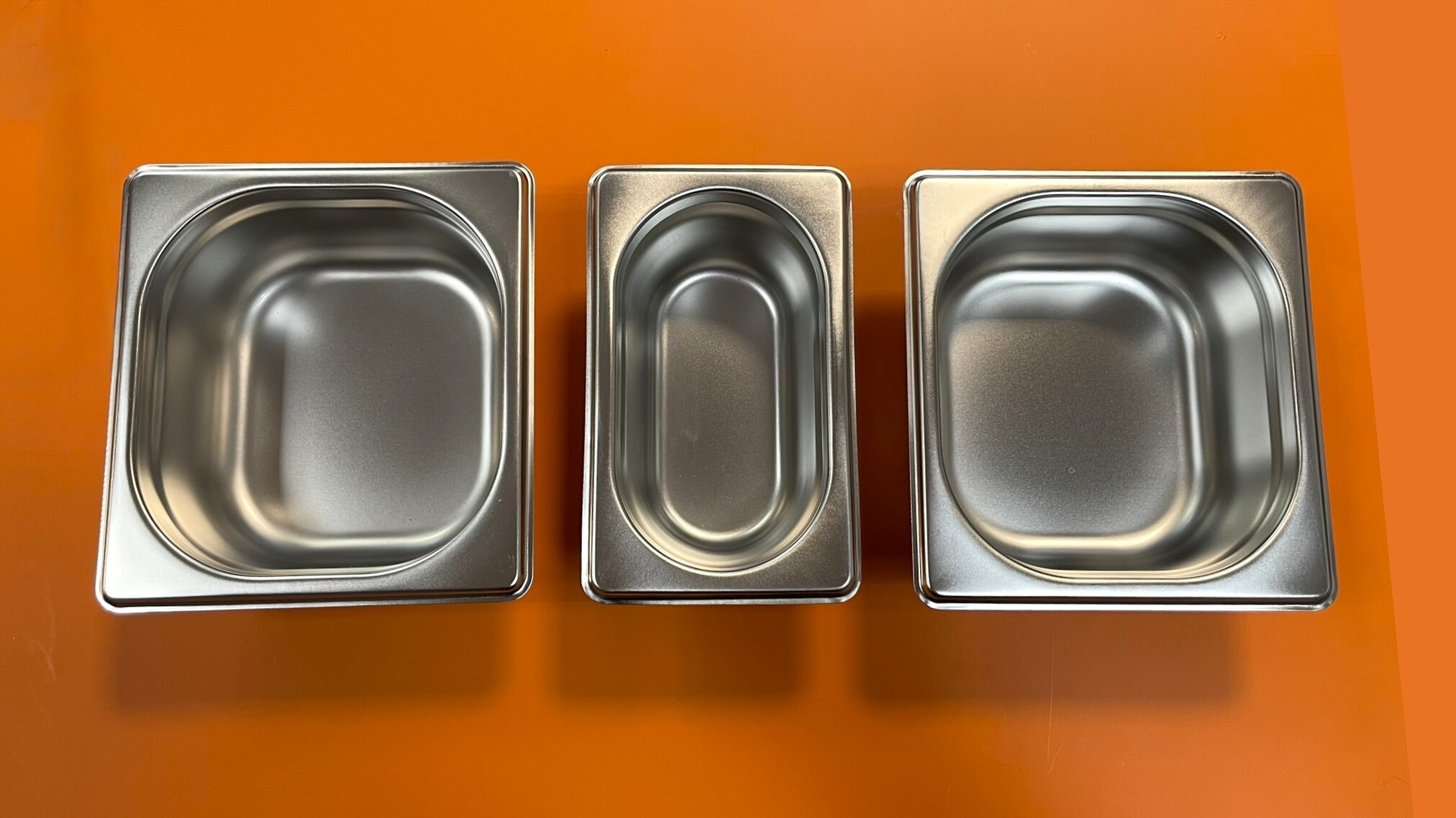 Gastronádoby mají hloubku 60 mm. Rozměry: 2 gastronádoby větší: 16 x 17,5 cm, 1 gastronádoba menší: 10,5 x 17,5 cm.