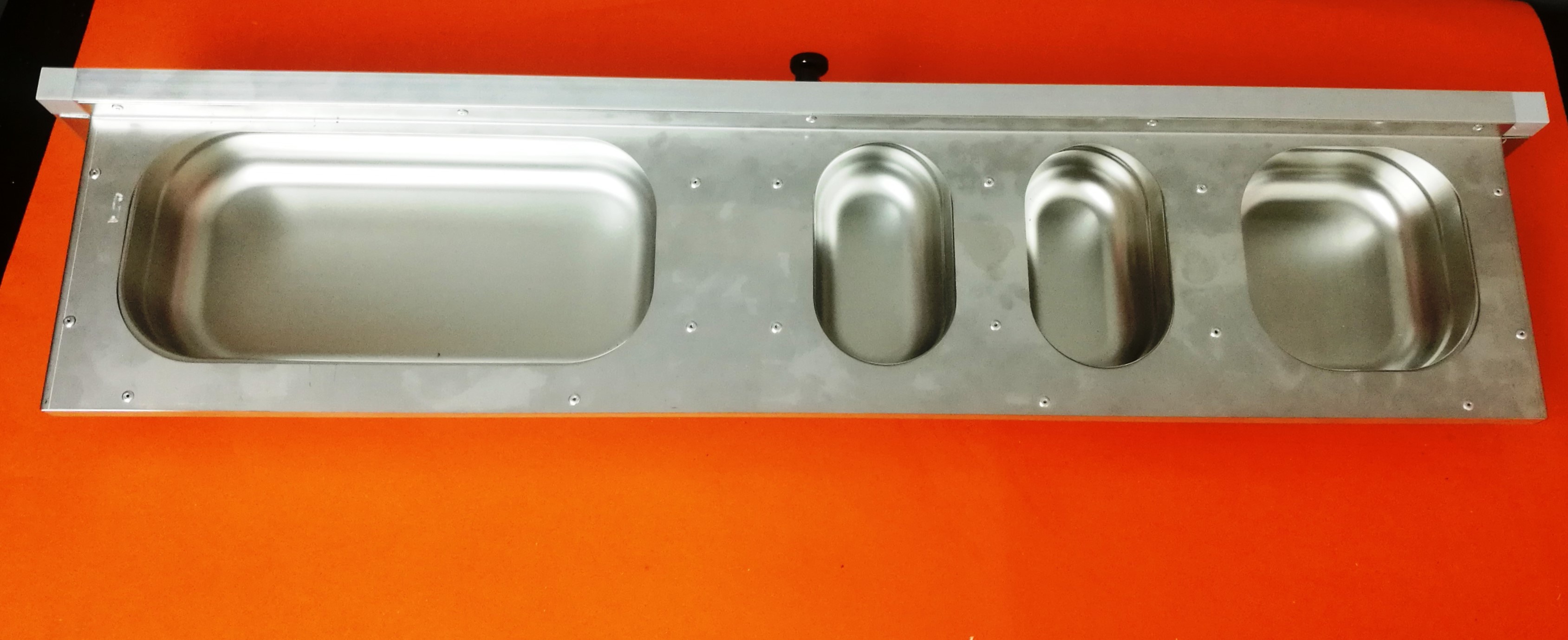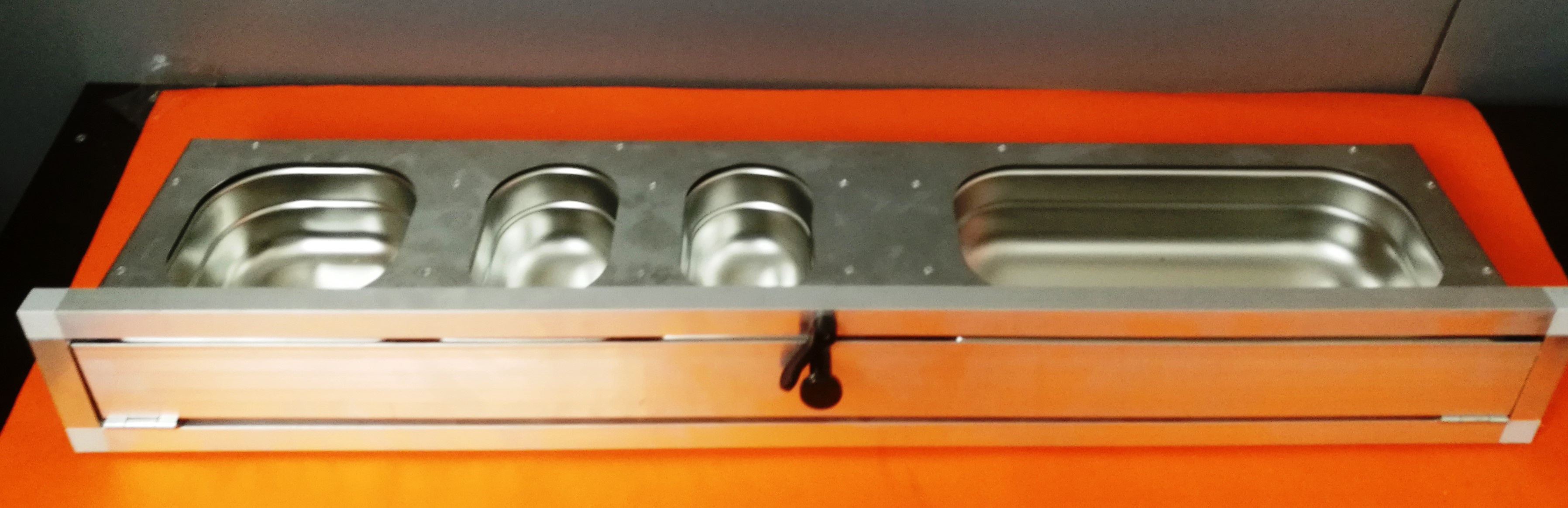 Zásuvný nerezový pult se vyznačuje především v kvalitě použitých materiálů a v provedení. Zásuvné krmné pulty s gastronádobami to jen potvrzují. Gastronádoby nejsou pro svou hloubku 60 mm vhodné pro drobné ptactvo. Síla nerezového plechu použitého na základní desku je 1 mm. Možnost kombinací s jinými zásuvnými pulty, případně i s otočnými pulty nabízí chovateli velkou možnost splnění svých představ, jak zajistit obsluhu svého chovatelského zařízení co nejlépe. Zásuvné i otočné krmné pulty (mimo krmný pult pro Ary) mají na výšku včetně rámečku 11 cm. Krmný pult je dodáván ve složeném stavu včetně rámečku. Rámeček je tvořen z hliníkového profilu 20x20x1,5 mm. Pokud se zákazník rozhodne zabudovat krmný pult přímo do konstrukce voliéry je ideální nechat si zaslat krmný pult a rámeček samostatně. V rámečku pak lze jednoduše zaměnit spojky a zabudovat pult přímo do konstrukce.